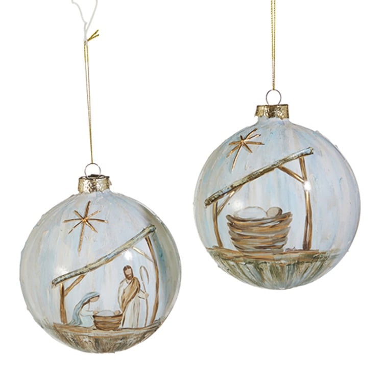 Add a touch of elegance to your Christmas tree with this stunning 5" Holy Night ball ornament. Featuring a beautiful design of a peaceful winter night scene with a shining star above, this ornament is sure to bring a sense of serenity to your holiday decor. Made of high-quality materials, this ornament is durable and will last for years to come. Hang it on your tree or display it in a decorative bowl for a festive touch in any room. This ornament is a perfect addition to your holiday collection