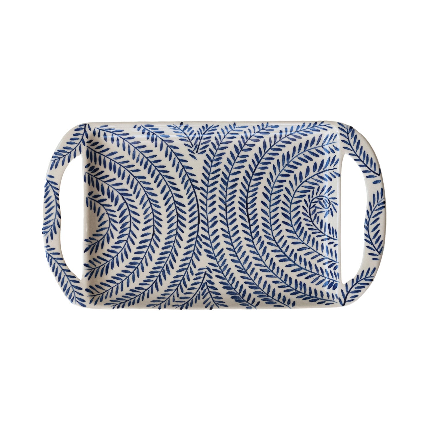 Hand-Painted Stoneware Tray with Botanical Pattern & Handles