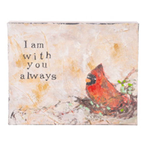 The Red Bird I Am With You Always Canvas offers a gentle reminder of love, presence, and peace. Featuring a vibrant red cardinal and a comforting message, this canvas is a meaningful accent that brings warmth and reassurance. A thoughtful gift or personal keepsake for moments of reflection, memory, or quiet strength.