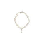 This playful pearl bead bracelet is perfectly sized for little wrists, featuring a sweet petite metal cross charm. The lobster clasp makes it easy for kids to wear and remove, adding a fun and meaningful accessory to any outfit. A charming gift for the special child in your life!