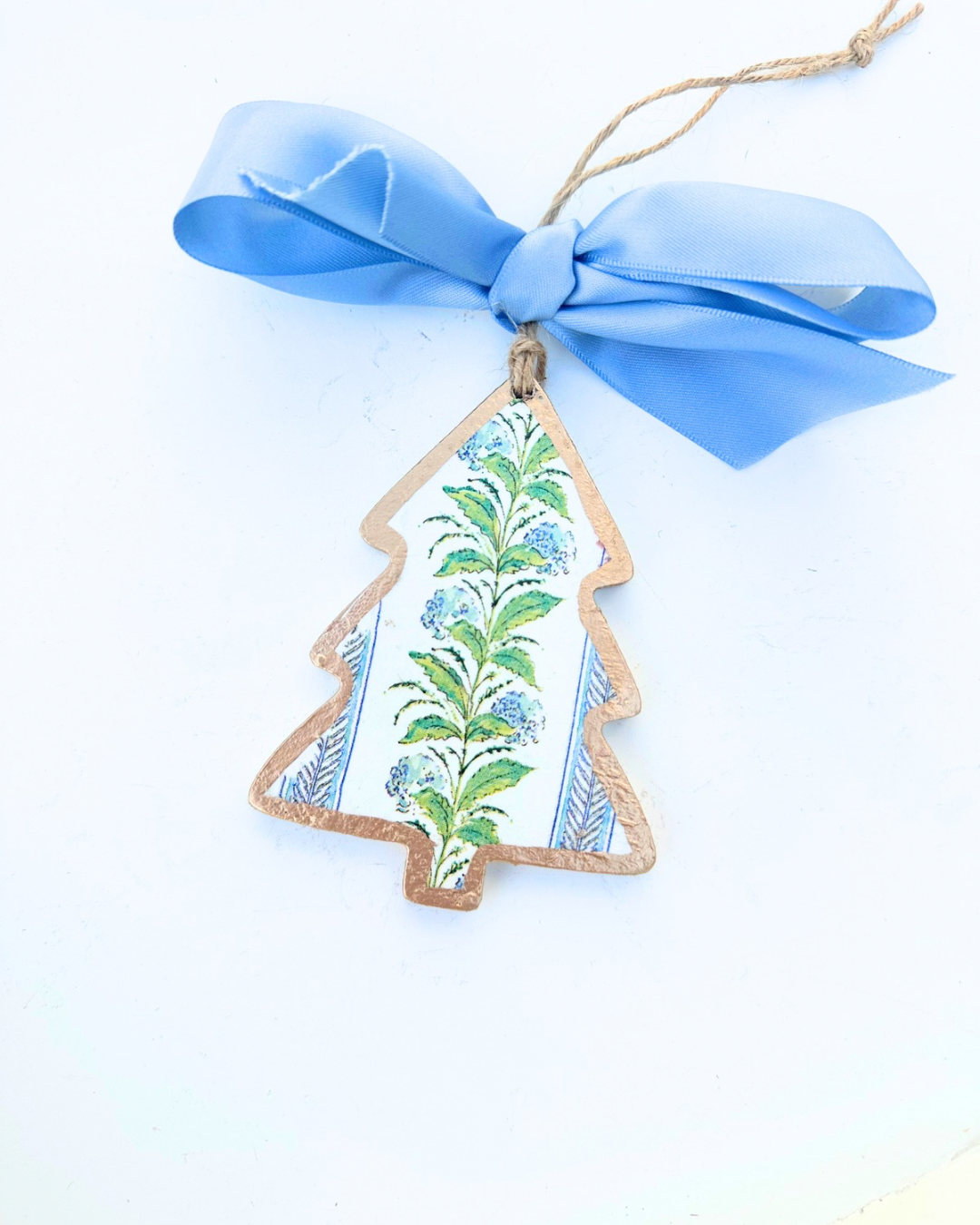These handmade ornaments are meticulously hand decoupaged and painted and finished with a satin bow.