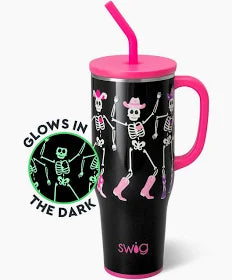 Sparkling glow-in-the-dark skeletons dance the night away at the rodeo, rocking cowgirl boots and hats on a glittery black stage.