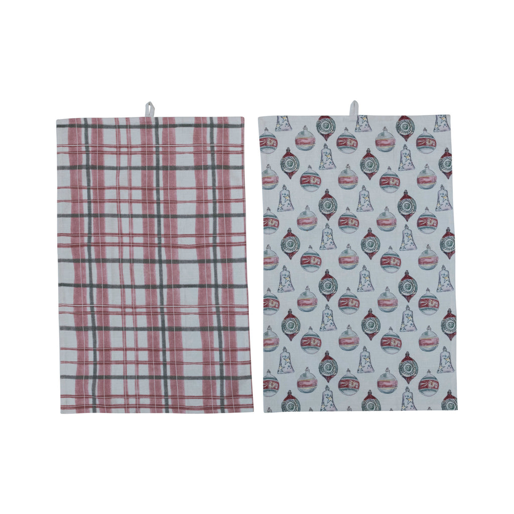 28"L x 18"W Cotton Printed Tea Towels w/ Loops, Multi Color, 2 Styles