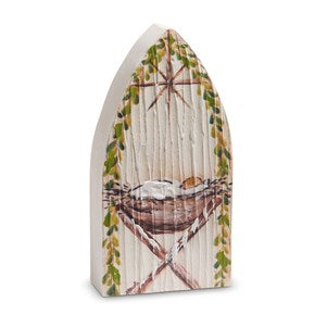 8" Jesus in Manger Textured Wood Block