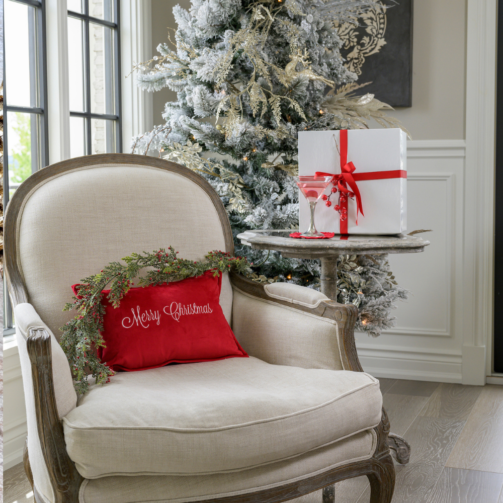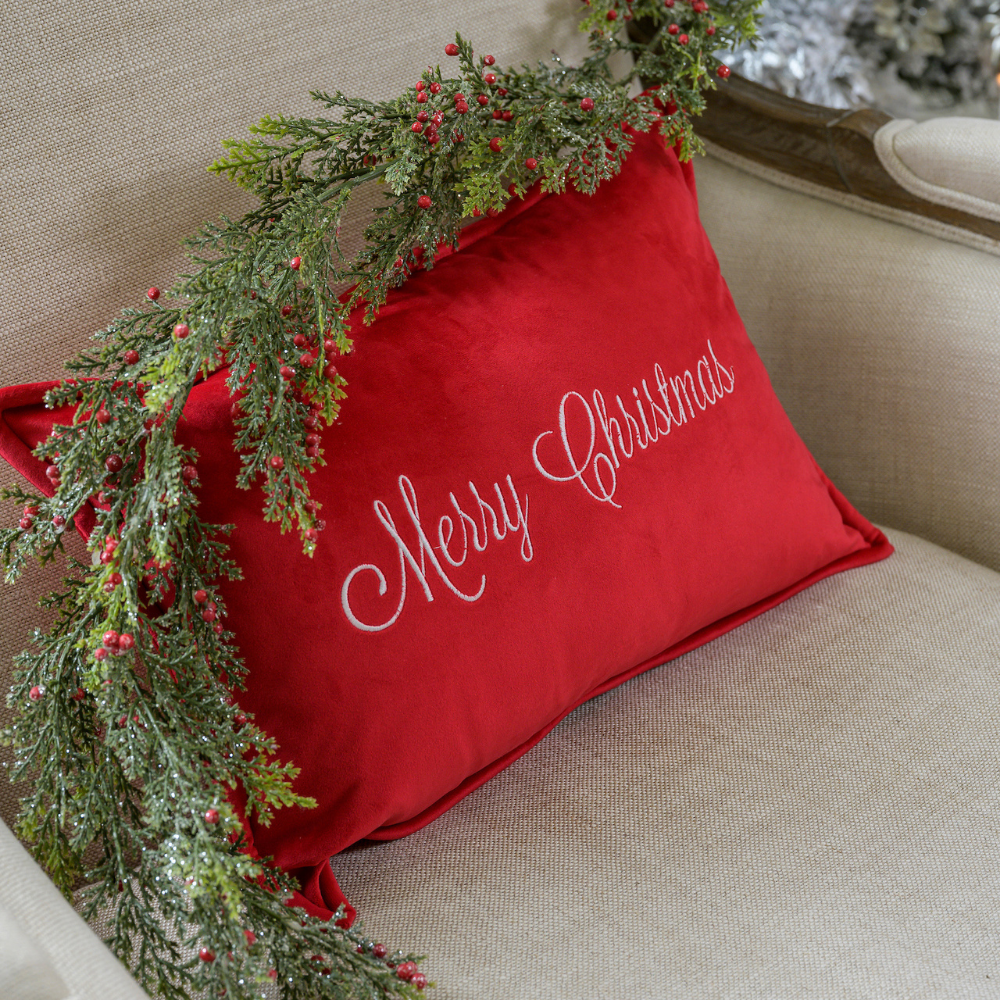 Simple, sophisticated and a perfect red for our Merry Christmas red velvet boudoir pillow. Perfect for the small space that needs a little holiday decor.