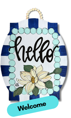 Navy Magnolia Welcome Door Hanger is backordered and will ship as soon as it is back in stock.
